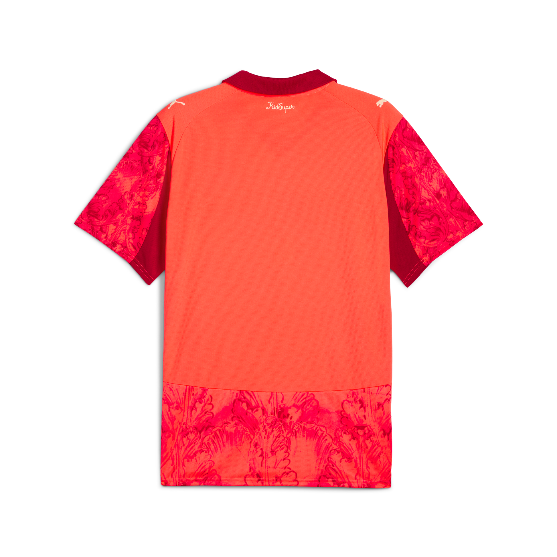 In 1914, a group of Italian immigrants founded a football team in São Paulo. Over a century later, Palmeiras continue to embody the vibrant fusion of Italian and Brazilian culture. With this kit, part of the PUMA x KIDSUPER collection, the Brooklyn designer honors the club’s legacy as the inaugural club world champions in 1951. The baroque-inspired Home Kit features a leaf motif against a golden base, a nod to the club’s Copa Rio triumph and timeless status.